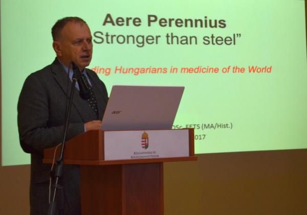 Az eseményen Prof. Dr. Molnár F. Tamás egyetemi tanár, a Magyar Tudományos Akadémia doktora a kiállítás témájához szorosan kapcsolódó orvostörténeti tematikájú előadást tartott. A szakmailag magas színvonalú, személyes élményekkel, és tapasztalatokkal kísért előadást, melyet szakmai vélemény- és tapasztalatcsere követett, nagy figyelemmel hallgatta a zsúfolásig megtelt előadóterem szakértő közönsége.