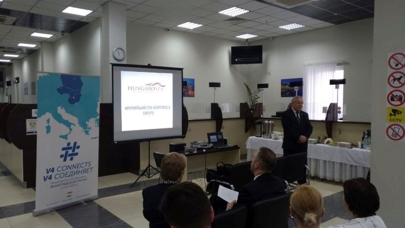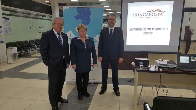 Az idei rendezvényen Európa legnagyobb fürdőkomplexuma, a hajdúszoboszlói Hungarospa Zrt. tartott bemutatkozó előadást. Nagykövetségünk részéről Szentpéteri Bertalan KGA általánosan ismertette a magyarországi turisztikai, gyógyászati, gazdasági lehetőségeket, ezt követően dr. Kulcsár Antal konzul tájékoztatást adott a turisztikai cégek akkreditációjának előnyeiről, feltételeiről és ismételt lehetőségéről.